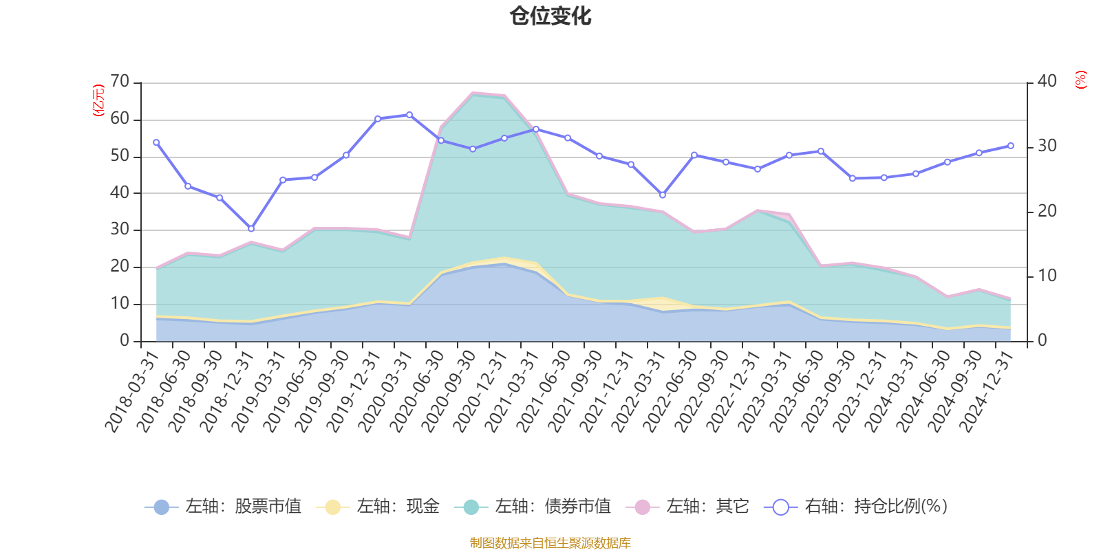 据定期报告数据统计,近三年平均股票仓位为27.28%,同类平均为18.74%。2020年一季度末基金达到35.01%的最高仓位,2018年末最低,为17.42%。